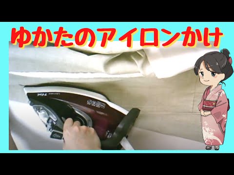 動画内では麻の男着物のアイロン掛けをしていますが、同じように