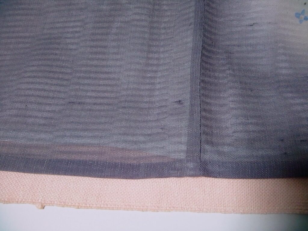 今回も写真のように大きい居敷当てを付けます。特に夏の透ける絽や紗ような着物は