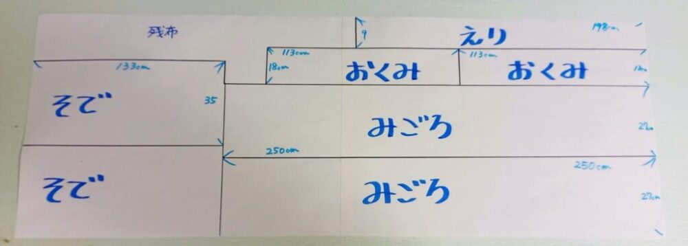 ちなみに身長150cm位以下の方の時は胸のところで「揚げ」と言う部分を作って